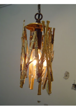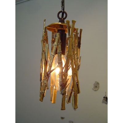 ペンダントランプ MOR05 素材: 真鍮表面: 塗装なしサイズ: 縦 150 : 横 120 : 奥行き 120 (単位はmm)参考価格 ¥18,000- <商品説明> シーリング(吊り下げ式)のランプシェードです。真鍮で造った竹の組み合わせから、光がもれます。見る位置で表情の変わるランプです