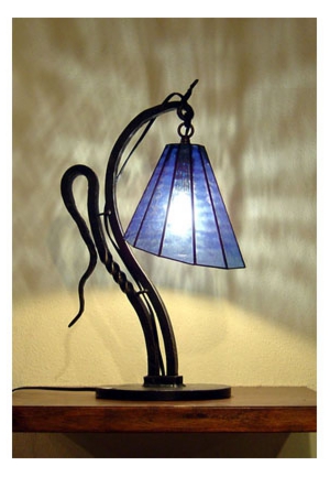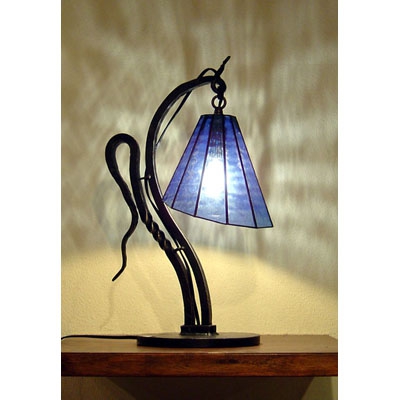 テーブルランプ MOR02 素材: 鍛鉄・ガラス表面: ウレタン塗装サイズ 縦 300 : 横 200 : 奥行き 160 (単位はmm)参考価格 ¥50,000- <商品説明> ベッドサイドなどにおいていただけるランプです大き目の、色つきガラスからもれる光は、懐かしさ、やわらかさがあります