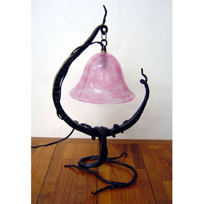テーブルランプ MOR04 素材: 鍛鉄・ガラス表面: 蜜蝋仕上げサイズ: 縦 400 : 横 250 : 奥行き 180 (単位はmm)参考商品 <商品説明> ガラスでできたシェードを、鍛鉄で作った骨組みと組み合わせています。絵本の中から飛び出したような雰囲気になっています