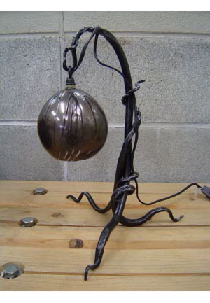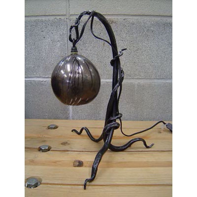 テーブルランプ MOR06 素材: 鍛鉄・吹きガラス表面: 蜜蝋仕上げサイズ: 縦 350 : 横 200 : 奥行き 150 (単位はmm)参考商品 <商品説明> 球体のシェードを、鍛鉄で作った骨組みと組み合わせています。絵本の中から飛び出したような雰囲気になっています