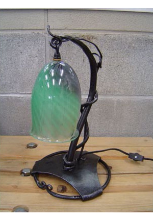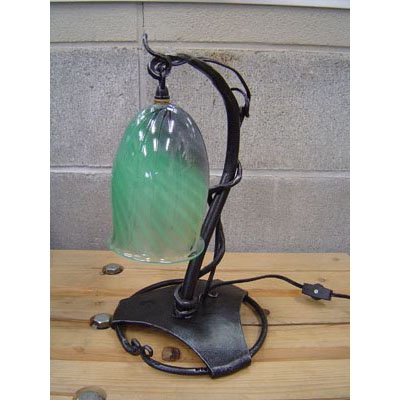 テーブルランプ MOR07 素材: 鉄・吹きガラス表面:ウレタン塗装縦:300 横:150 奥行き:150(mm)参考商品 <商品説明> ベルのような形状のガラス製のシェードを、鍛鉄で作った骨組みと組み合わせています。足元はシンプルな形状にまとめています