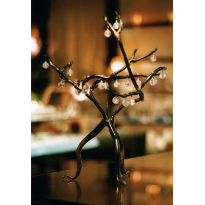 鍛鉄の先に、ガラスビーズを吊り下げ、桜の木のような形状になっています。