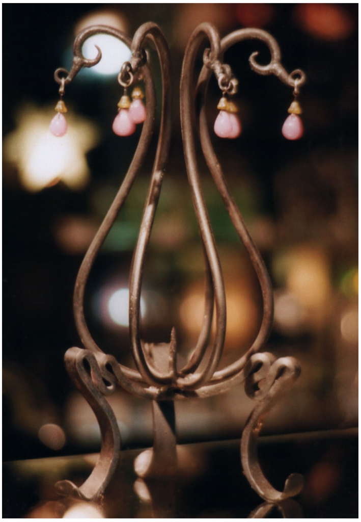 鍛鉄の先に、ガラスビーズを吊り下げた形状になっています。