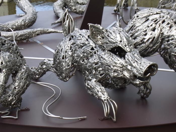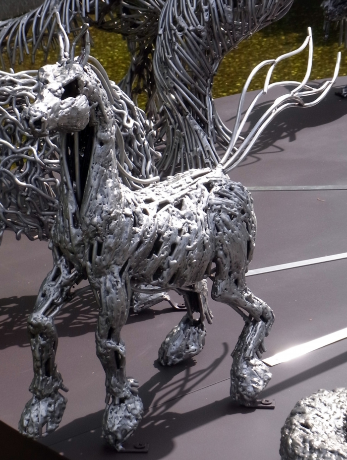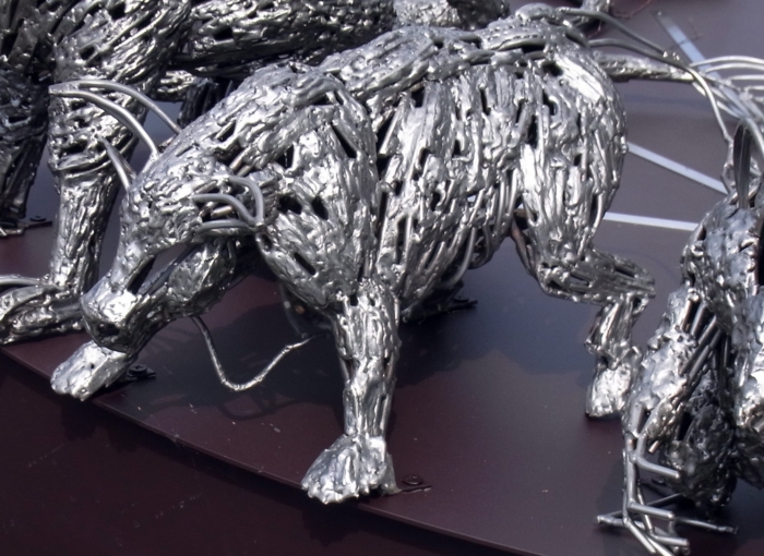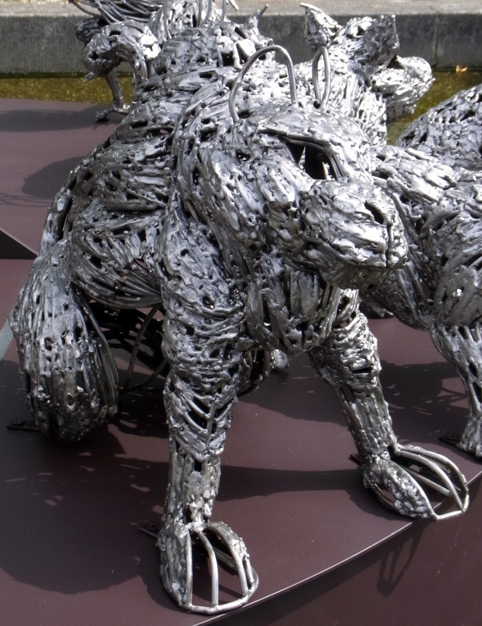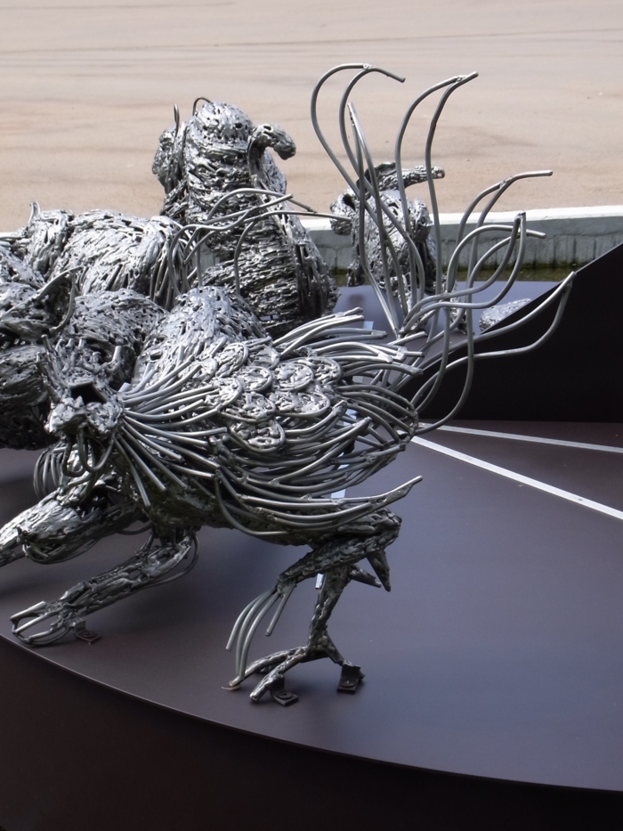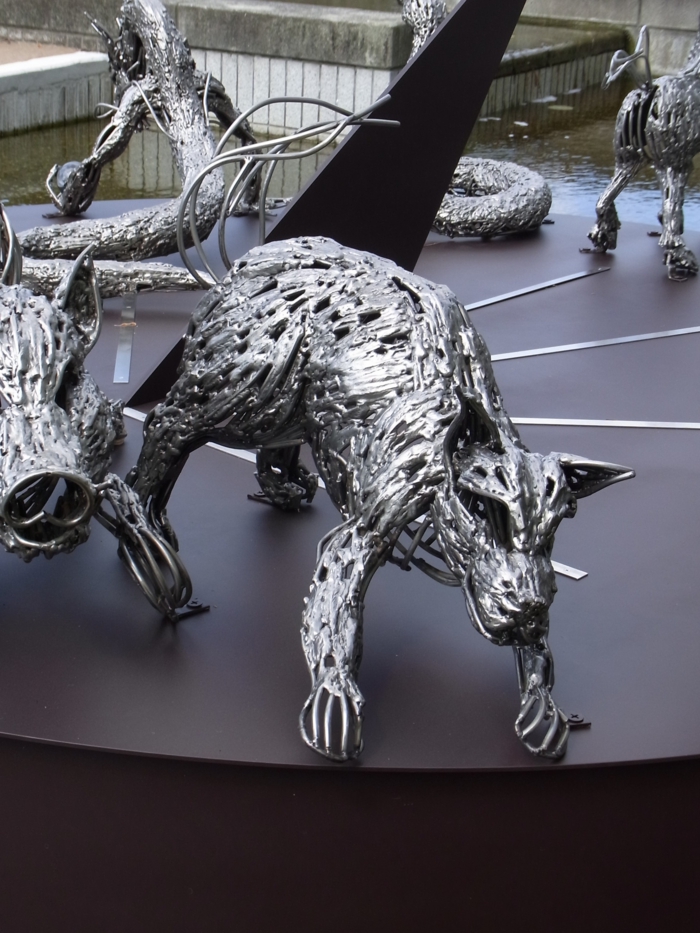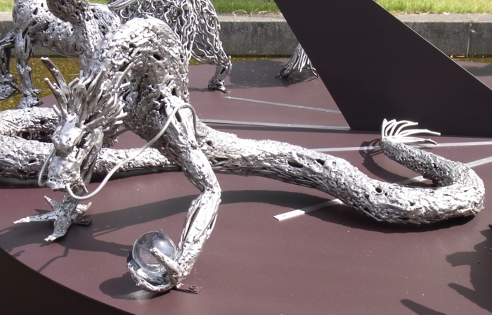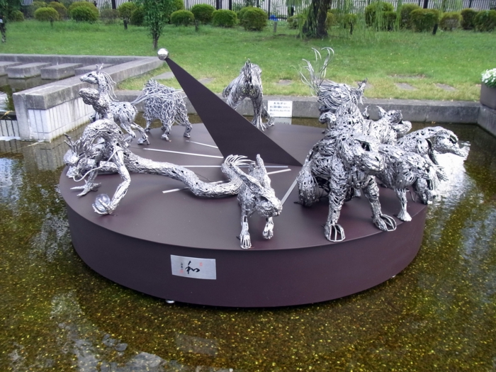 「和」十二支の日時計 (京都府京都市) <説明> >素材:本体:ステンレス 土台:コールテン鋼>サイズ(mm):2300x900京都府立植物園に設置された日時計で、十二支が各時刻にあしらわれています。タイトルは「和」。山田京都府知事につけて頂き、パネルを書いていただきました。 京都洛北ロータリー倶楽部40周年の寄贈です。
