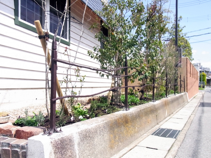 長浜の庭 (滋賀県) <説明> >素材:鍛鉄の柵個人宅のエクステリアを鍛造の柵で制作しました。庭は庭椿さんに協力していただき、植物と鉄のトータルで外観デザインしています。【庭椿】http://d.hatena.ne.jp/tsubakino/