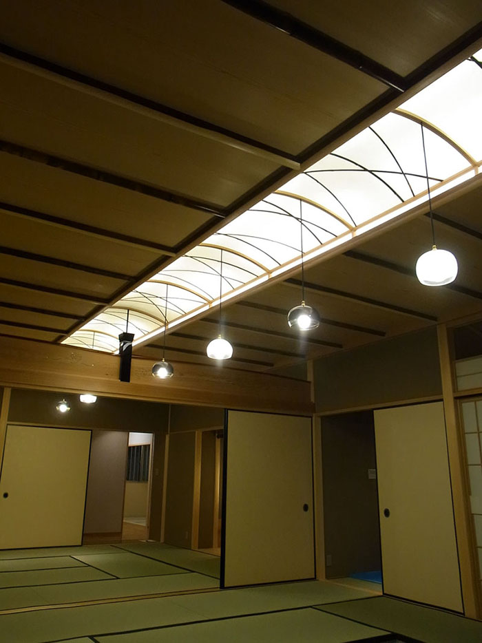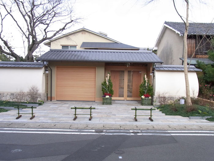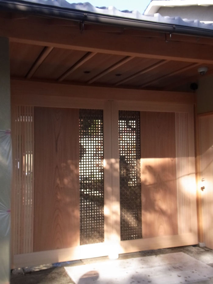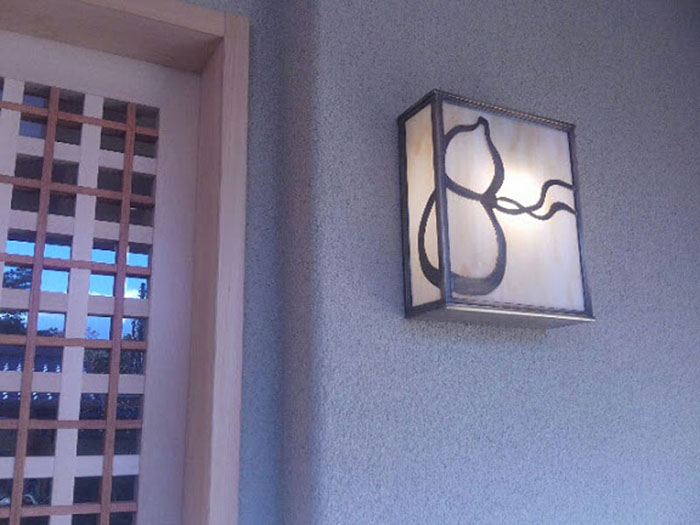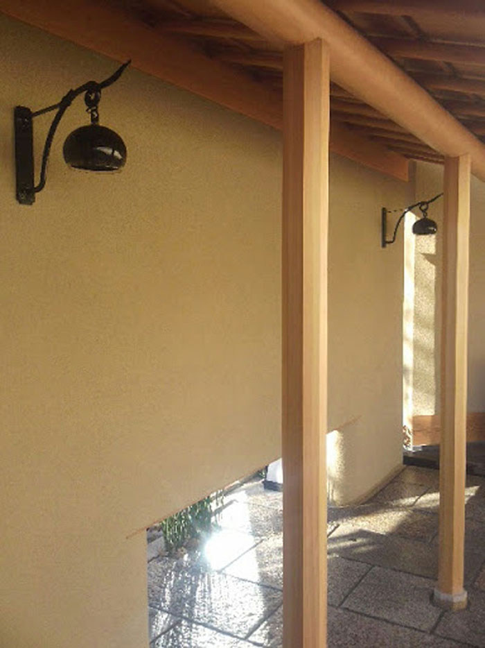 京都府の個人宅の、門扉のデザイン、外灯、室内の照明のデザイン。
