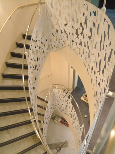 螺旋階段も同じく、吹き抜け部分の天窓から、木漏れ日のように光があふれる空間になっています。