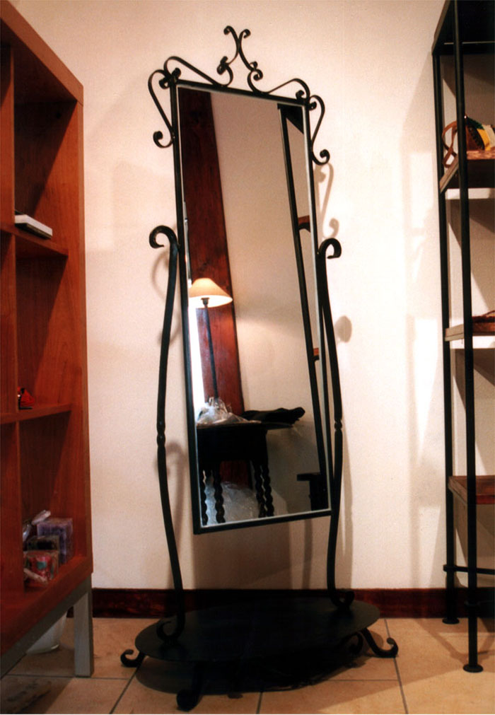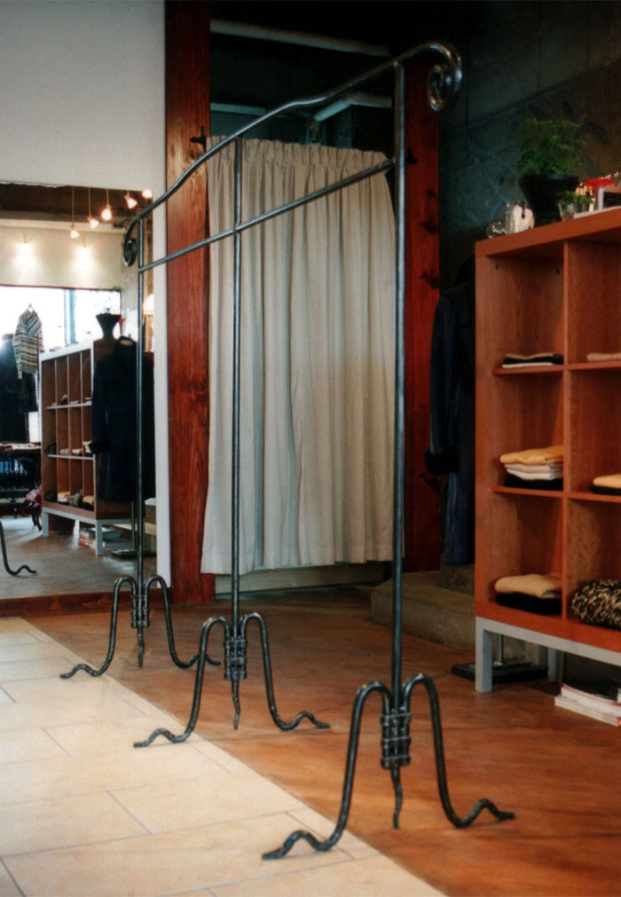 トナ 店内インテリア (兵庫県) <説明> >素材: 鍛鉄・鏡>仕上げ: ウレタン塗装兵庫県芦屋市にあるブティック「トナ」様のインテリアを製作しました。鍛鉄で作った骨組みに鏡をあわせた姿見、ディスプレイ用のマネキンを作成し、足元を鍛鉄で製作しています。ディスプレイ用ハンガーも同じく鍛鉄で製作しました。