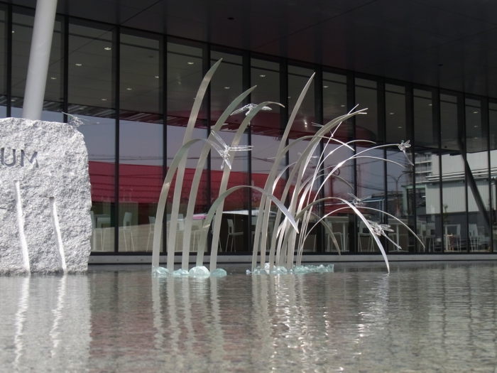 滋賀県長浜市に完成したヤンマー株式会社のボートやパワーショベルの操作シュミレーションなどができる博物館「ヤンマーミュージアム」のエントランスのオブジェを制作いたしました。