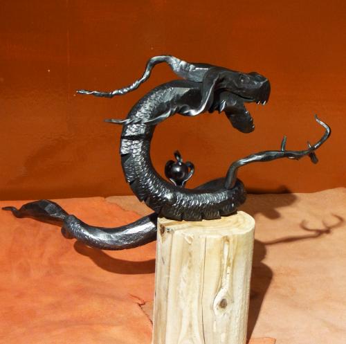 鍛造の技術で作られたとぐろを巻いた龍の作品。